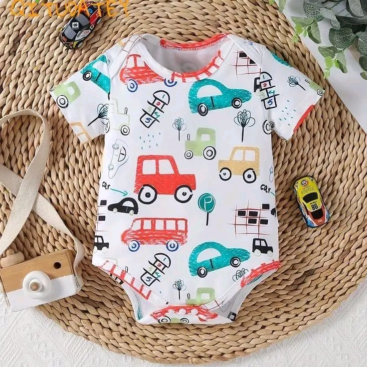 Be the first to review “Half sleeve Car printed white color baby keeper/ body suit”